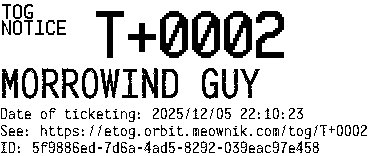 Orbit eTOG Listing Service: T+0002 MORROWIND GUY