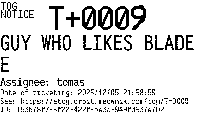Orbit eTOG Listing Service: T+0009 GUY WHO LIKES BLADEE