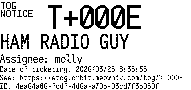Orbit eTOG Listing Service: T+000E HAM RADIO GUY