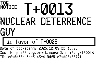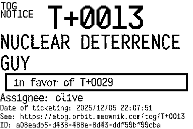 Orbit eTOG Listing Service: T+0013 NUCLEAR DETERRENCE GUY