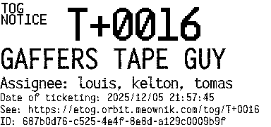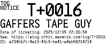 Orbit eTOG Listing Service: T+0016 GAFFERS TAPE GUY