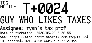 Orbit eTOG Listing Service: T+0024 GUY WHO LIKES TAXES
