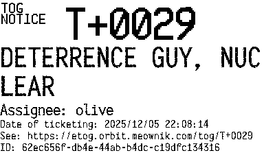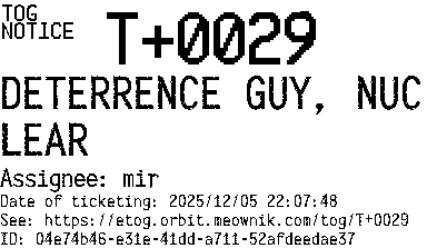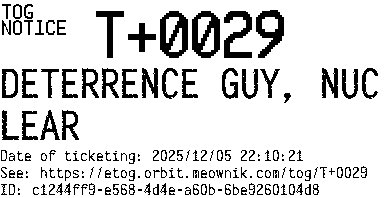 Orbit eTOG Listing Service: T+0029 DETERRENCE GUY, NUCLEAR