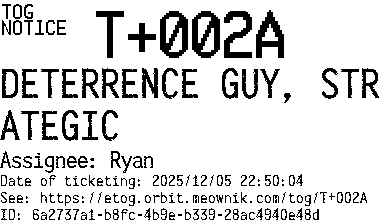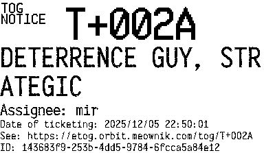Orbit eTOG Listing Service: T+002A DETERRENCE GUY, STRATEGIC