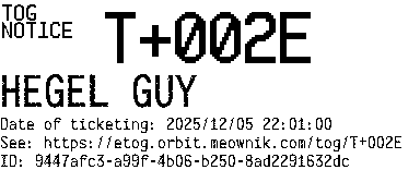 Orbit eTOG Listing Service: T+002E HEGEL GUY