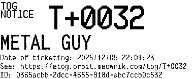 Orbit eTOG Listing Service: T+0032 METAL GUY