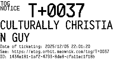 Orbit eTOG Listing Service: T+0037 CULTURALLY CHRISTIAN GUY