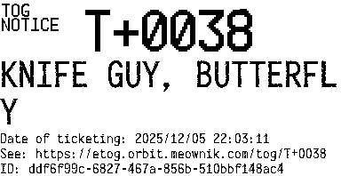 Orbit eTOG Listing Service: T+0038 KNIFE GUY, BUTTERFLY