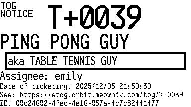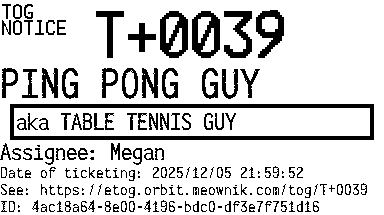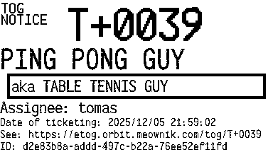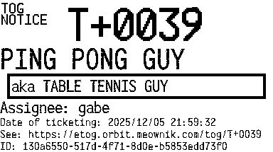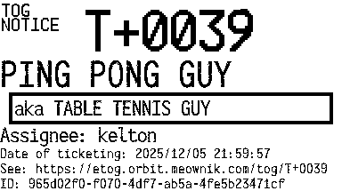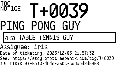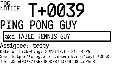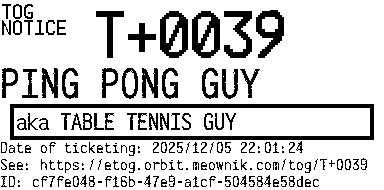 Orbit eTOG Listing Service: T+0039 PING PONG GUY