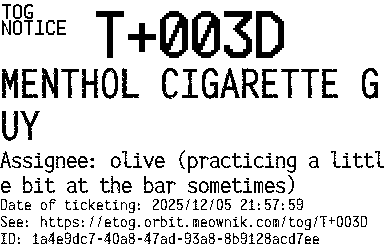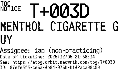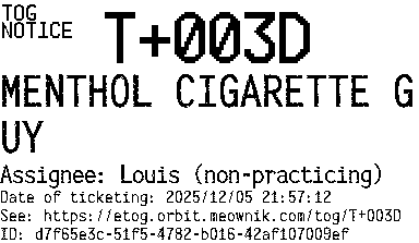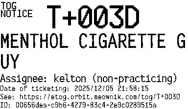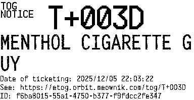Orbit eTOG Listing Service: T+003D MENTHOL CIGARETTE GUY