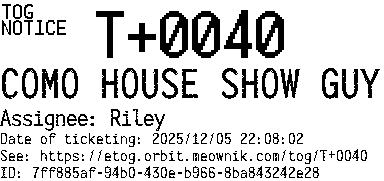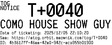 Orbit eTOG Listing Service: T+0040 COMO HOUSE SHOW GUY