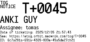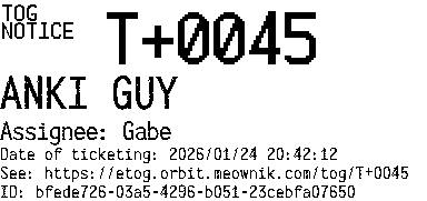 Orbit eTOG Listing Service: T+0045 ANKI GUY