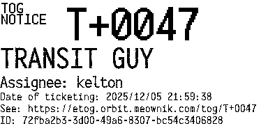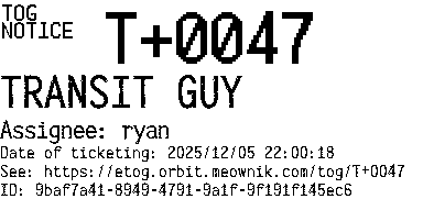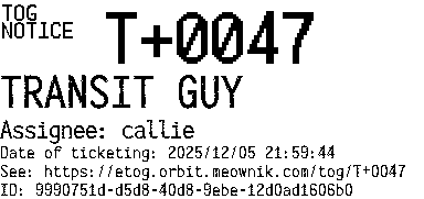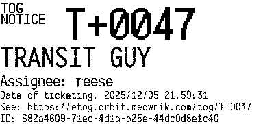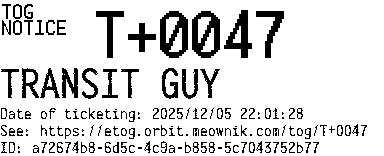 Orbit eTOG Listing Service: T+0047 TRANSIT GUY