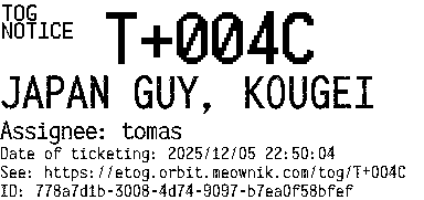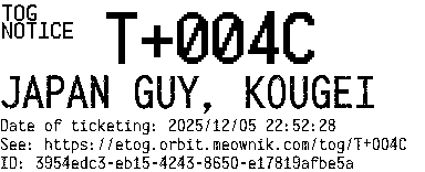 Orbit eTOG Listing Service: T+004C JAPAN GUY, KOUGEI