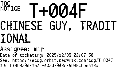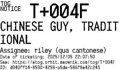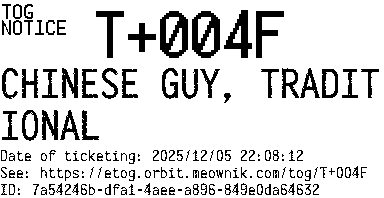 Orbit eTOG Listing Service: T+004F CHINESE GUY, TRADITIONAL