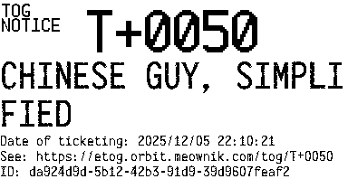 Orbit eTOG Listing Service: T+0050 CHINESE GUY, SIMPLIFIED