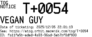 Orbit eTOG Listing Service: T+0054 VEGAN GUY