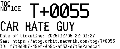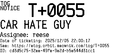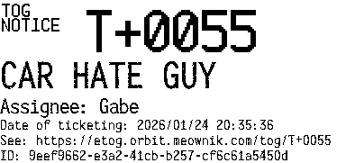 Orbit eTOG Listing Service: T+0055 CAR HATE GUY