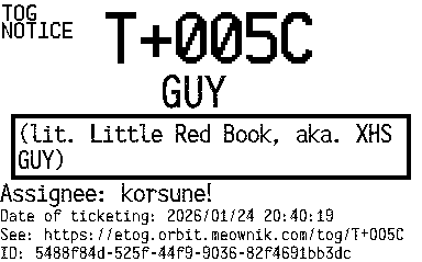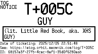 Orbit eTOG Listing Service: T+005C 小红书 GUY