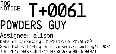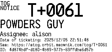 Orbit eTOG Listing Service: T+0061 POWDERS GUY