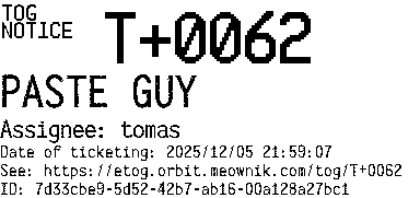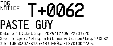Orbit eTOG Listing Service: T+0062 PASTE GUY