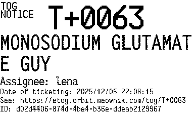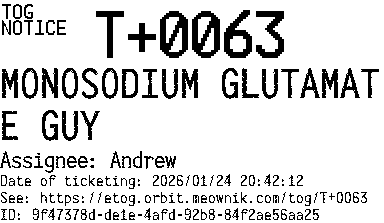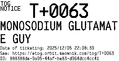 Orbit eTOG Listing Service: T+0063 MONOSODIUM GLUTAMATE GUY