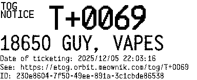 Orbit eTOG Listing Service: T+0069 18650 GUY, VAPES