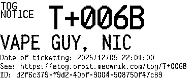 Orbit eTOG Listing Service: T+006B VAPE GUY, NIC