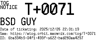 Orbit eTOG Listing Service: T+0071 BSD GUY