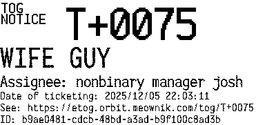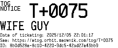 Orbit eTOG Listing Service: T+0075 WIFE GUY