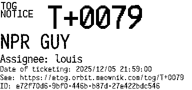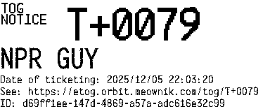 Orbit eTOG Listing Service: T+0079 NPR GUY