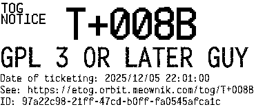 Orbit eTOG Listing Service: T+008B GPL 3 OR LATER GUY