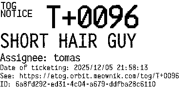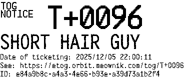 Orbit eTOG Listing Service: T+0096 SHORT HAIR GUY