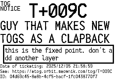 Orbit eTOG Listing Service: T+009C GUY THAT MAKES NEW TOGS AS A CLAPBACK
