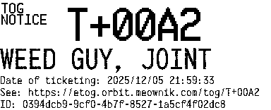 Orbit eTOG Listing Service: T+00A2 WEED GUY, JOINT