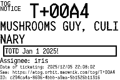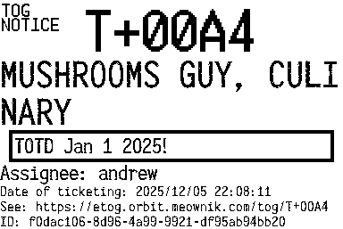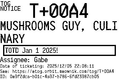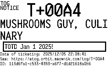 Orbit eTOG Listing Service: T+00A4 MUSHROOMS GUY, CULINARY