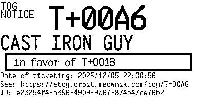 Orbit eTOG Listing Service: T+00A6 CAST IRON GUY