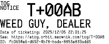 Orbit eTOG Listing Service: T+00AB WEED GUY, DEALER