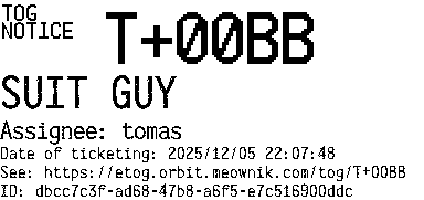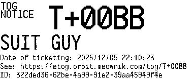 Orbit eTOG Listing Service: T+00BB SUIT GUY