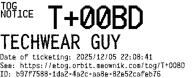 Orbit eTOG Listing Service: T+00BD TECHWEAR GUY