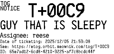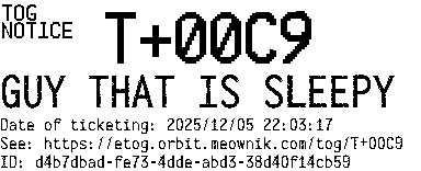 Orbit eTOG Listing Service: T+00C9 GUY THAT IS SLEEPY