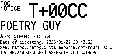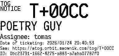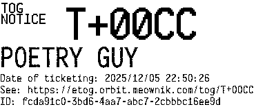 Orbit eTOG Listing Service: T+00CC POETRY GUY
