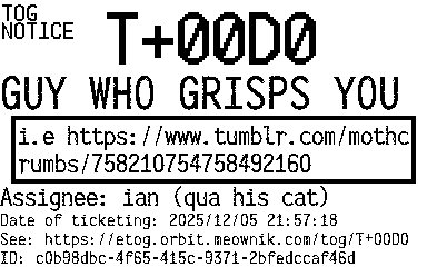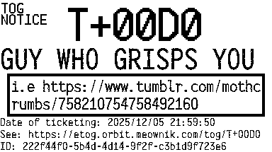 Orbit eTOG Listing Service: T+00D0 GUY WHO GRISPS YOU