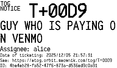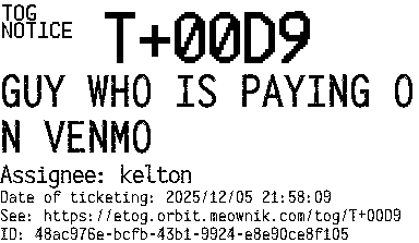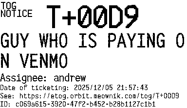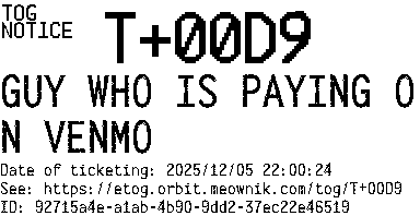 Orbit eTOG Listing Service: T+00D9 GUY WHO IS PAYING ON VENMO