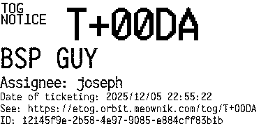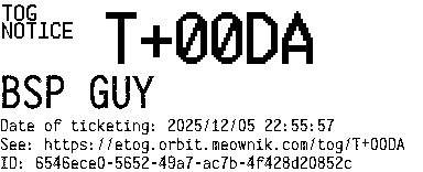 Orbit eTOG Listing Service: T+00DA BSP GUY