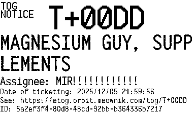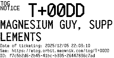 Orbit eTOG Listing Service: T+00DD MAGNESIUM GUY, SUPPLEMENTS