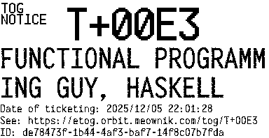 Orbit eTOG Listing Service: T+00E3 FUNCTIONAL PROGRAMMING GUY, HASKELL