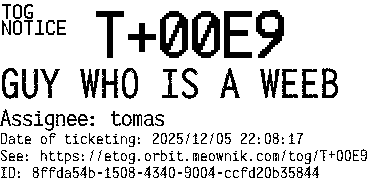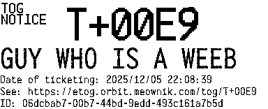Orbit eTOG Listing Service: T+00E9 GUY WHO IS A WEEB