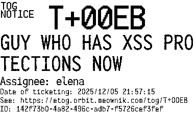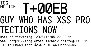 Orbit eTOG Listing Service: T+00EB GUY WHO HAS XSS PROTECTIONS NOW