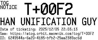 Orbit eTOG Listing Service: T+00F2 HAN UNIFICATION GUY